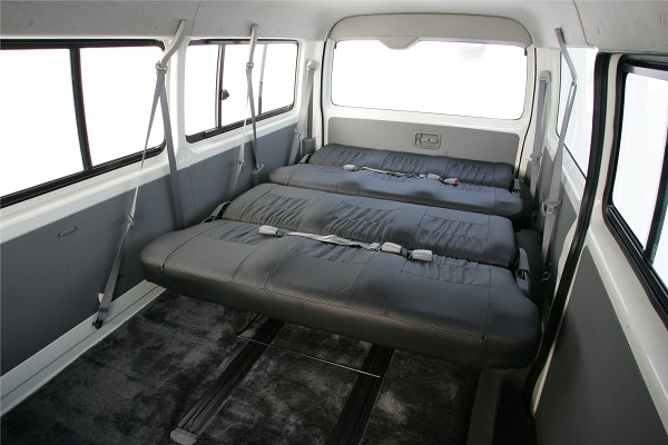 後席第2列目、第3列目ともに平成24年度新基準適合(全席3点式シートベルト装着・ISOFIX対応チャイルドシート装着装置設置)のベンチシートを採用。
