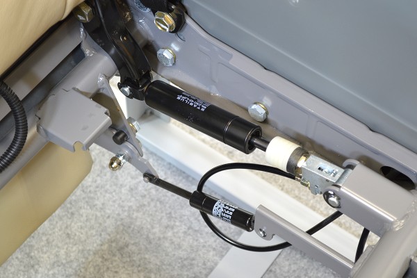 油圧シリンダーに装着したリクライニング角度調整の駒を、入替で角度調整可能(1駒で5°修正可能)